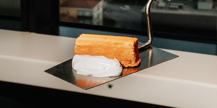 Dieses einzigartige Dessert vereint die Aromen eines klassischen Punschwürfels mit einer zarten Füllung aus Rum und Orangenlikör. Die Fülle aus weißer Original Beans-Schokolade – bekannt für ihre Fair-Trade- und nachhaltige Qualität – verleiht dem Ganzen Tiefe und Harmonie. Die orangefarbene Glasur, die an die ikonischen Ziegel erinnert, macht jeden Bissen zu einem Geschmackserlebnis und einer Hommage an die Geschichte Wienerbergs – eine moderne Neuinterpretation des Wiener Erbes.